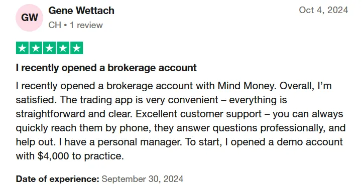 Mind Money — это брокер, который заслуживает внимания тех, кто ищет надёжного европейского партнёра для торговли на финансовых рынках. Высокий уровень безопасности, быстрое исполнение ордеров и удобная платформа делают его отличным выбором как для опытных трейдеров, так и для новичков.
